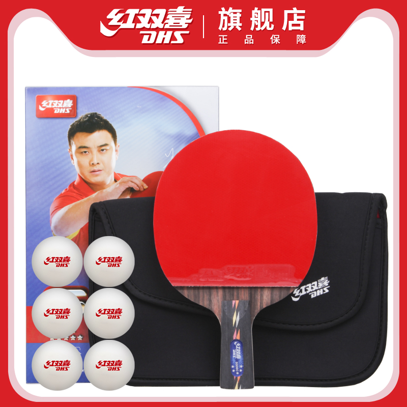 Red Double Happiness Table Tennis Racket Five Star Carbon 5 Star Crazy Flutter Table Tennis Finished Racket Single Shot Professional Fast Attack Arc Circle