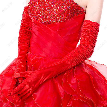 bridal wedding dress gloves wedding accessories winter lengthened with elbows red gown gloves even mean wedding accessories woman-Taobao
