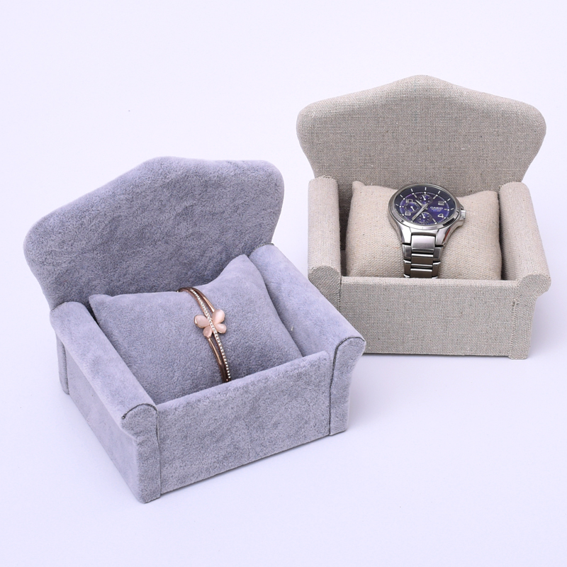Grey Watches box Ice suede sofa Shouting box bracelet Display Case Bracelet Handmade Display Props