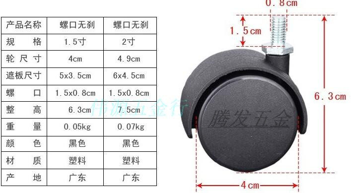 Nylon universal wheel plug-in caster screw caster swivel chair caster black silencer pulley 1 5 inch