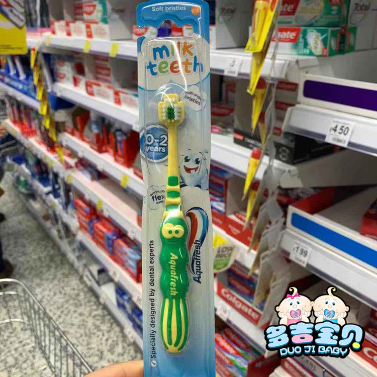 British Aquafresh milk teeth milktooth toothbrush 0-2 years old soft hair elastic handle spot