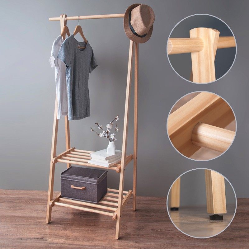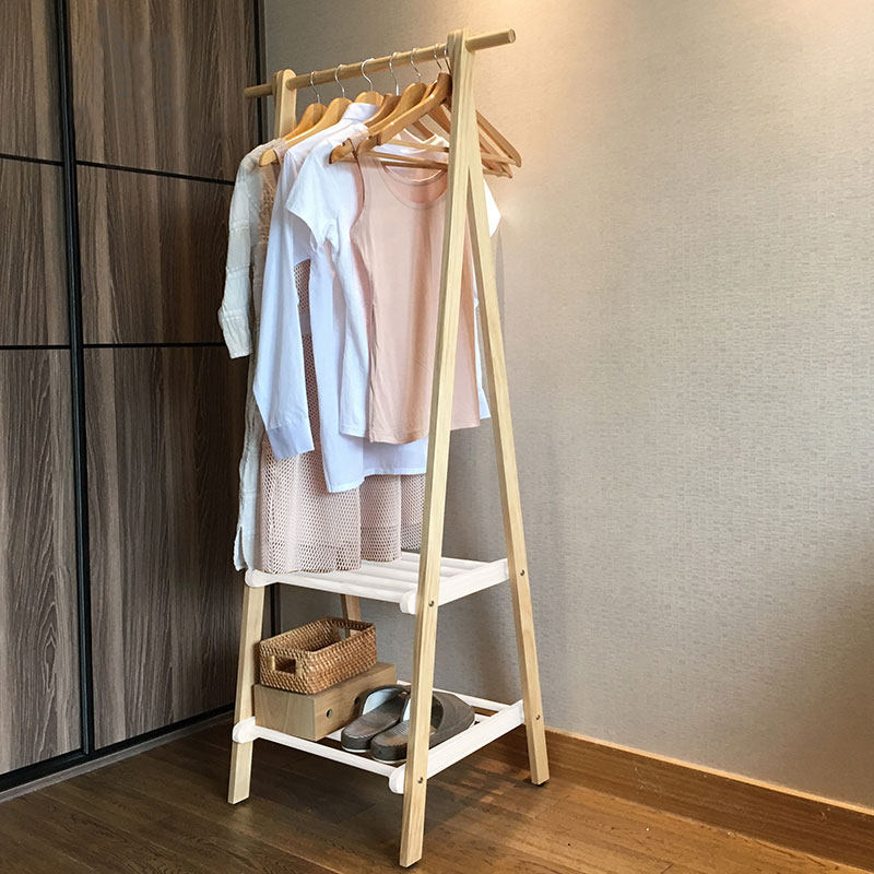 Clear wooden clothes frame floor rack household simple clothes hanger bedroom living room