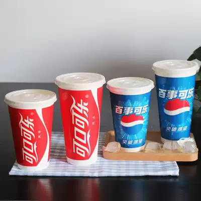 300 400 500 600ml disposable paper cup beverage cup with lid cold drink double film Pepsi paper cup