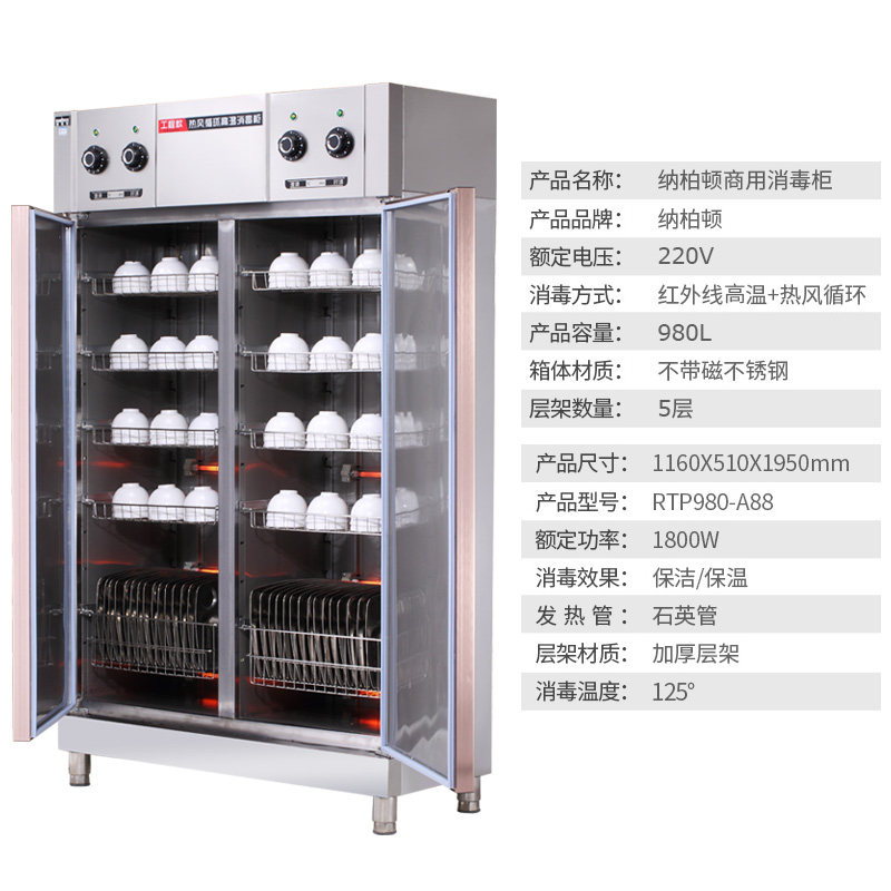 Naberton commercial disinfection cabinet vertical non-magnetic steel hotel canteen 980L large-capacity high-temperature ozone tableware disinfection