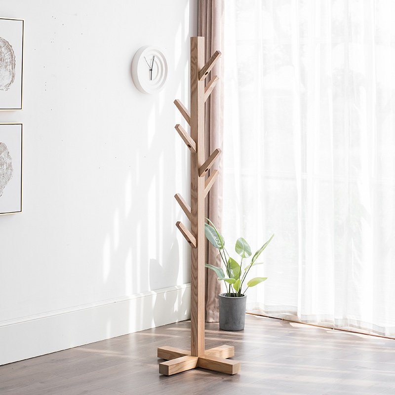 Pure solid wood cloakclothes rack hanging clothes hanger floor hanging clothes rack oak wood hanging clothes rack bedroom American furniture