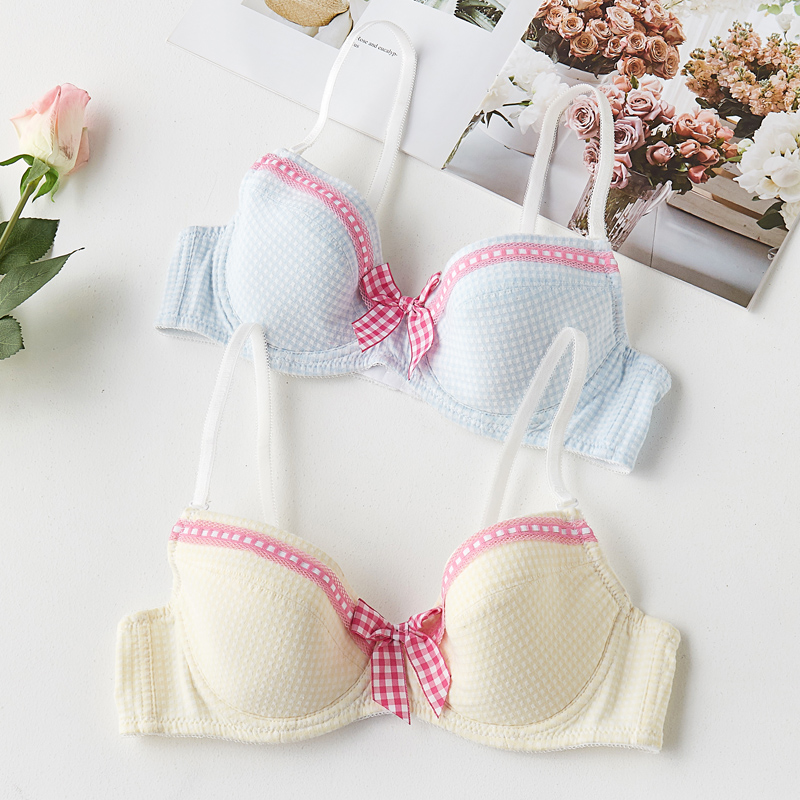 Shallow Upper House Teen Girl Bra Thin development Opening high school High school students Soft steel ring small breasts to woo pure cotton college students underwear