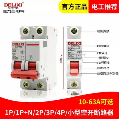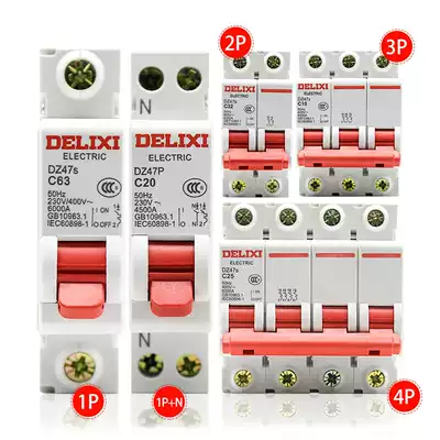 Delixi 1P air switch 2P household 32a63a three-phase 3P circuit breaker DZ47S 4P air open 100A switch
