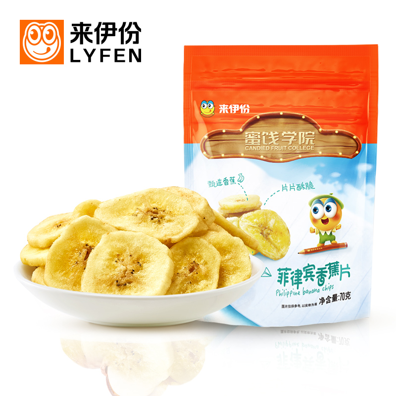 Laiyi banana slices 70gx2 bags of leisure snacks Dried plantain candied fruit dried banana slices Laiyi