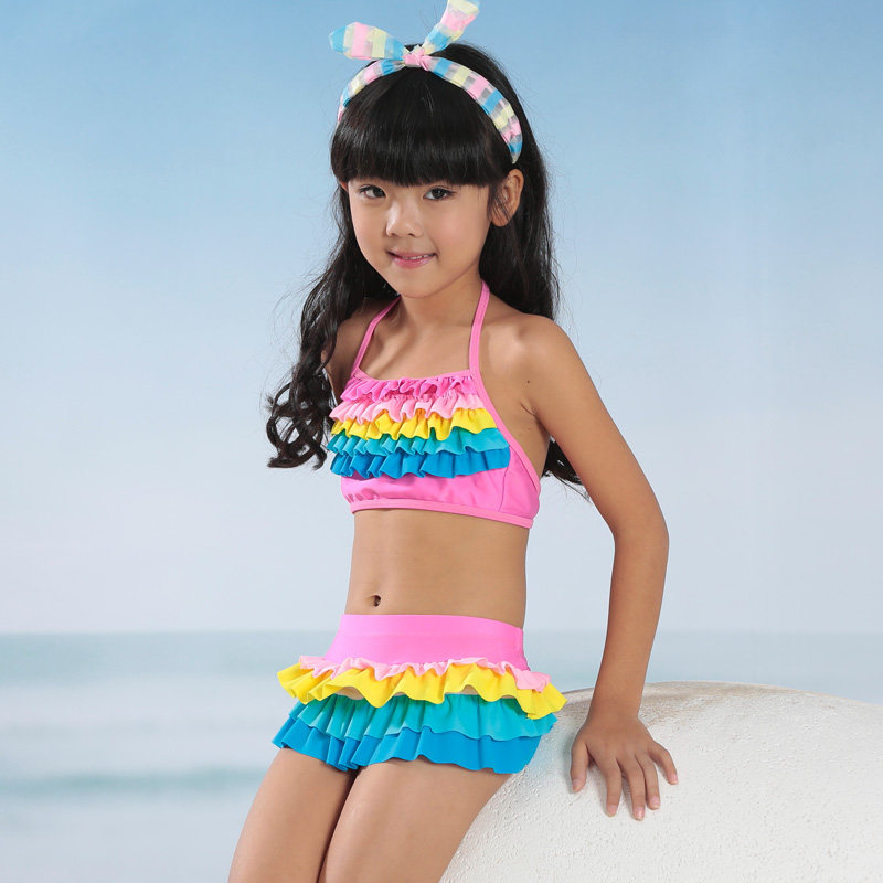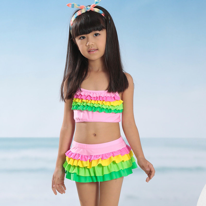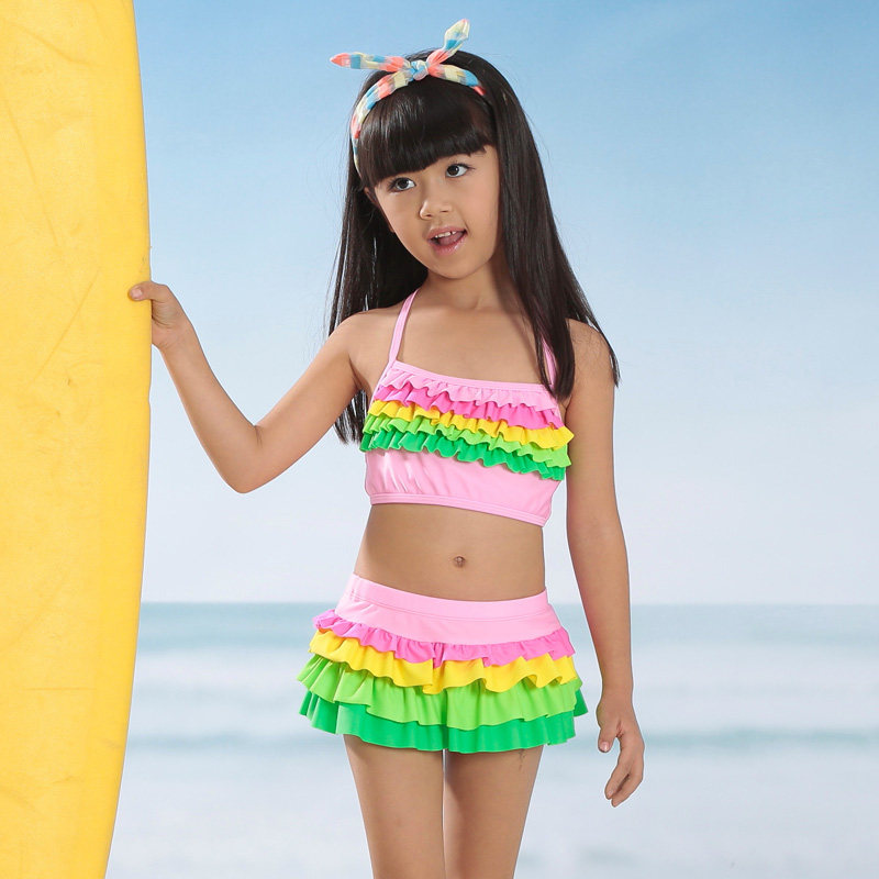 2017 new cute Korean version size girls swimsuit children split baby cake skirt set hot spring swimsuit