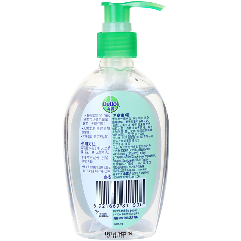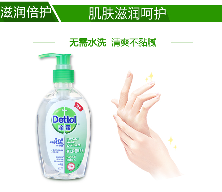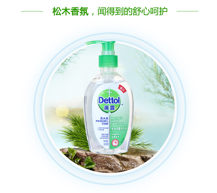 Drop dew wash-free hand sanitizer press bottle classic pine flavor 200ml bottle out antibacterial portable household import