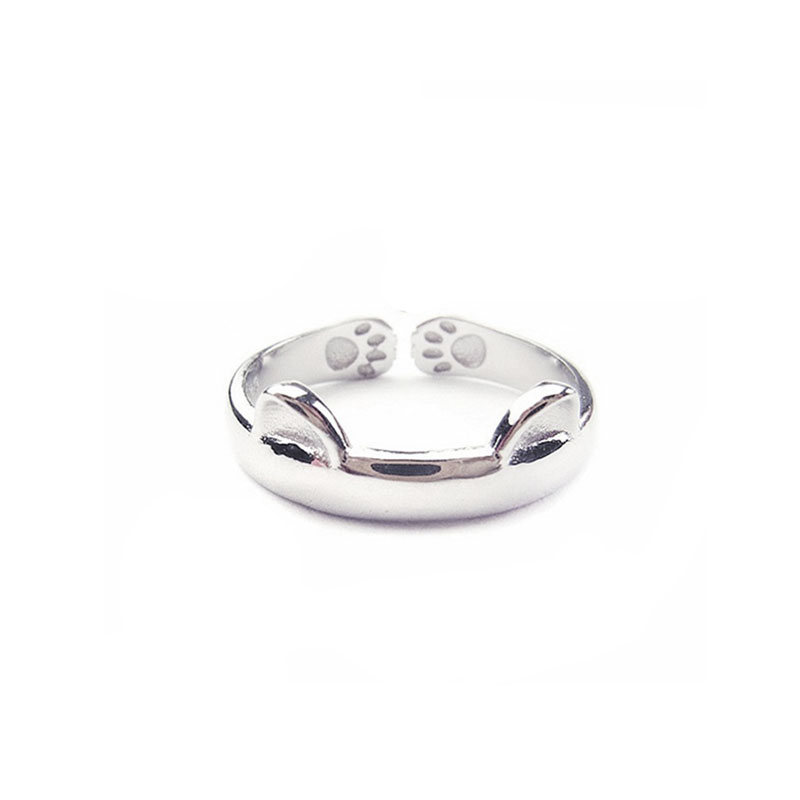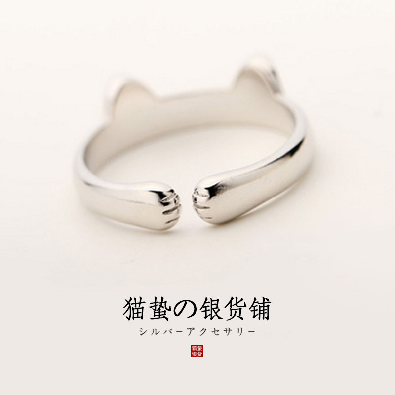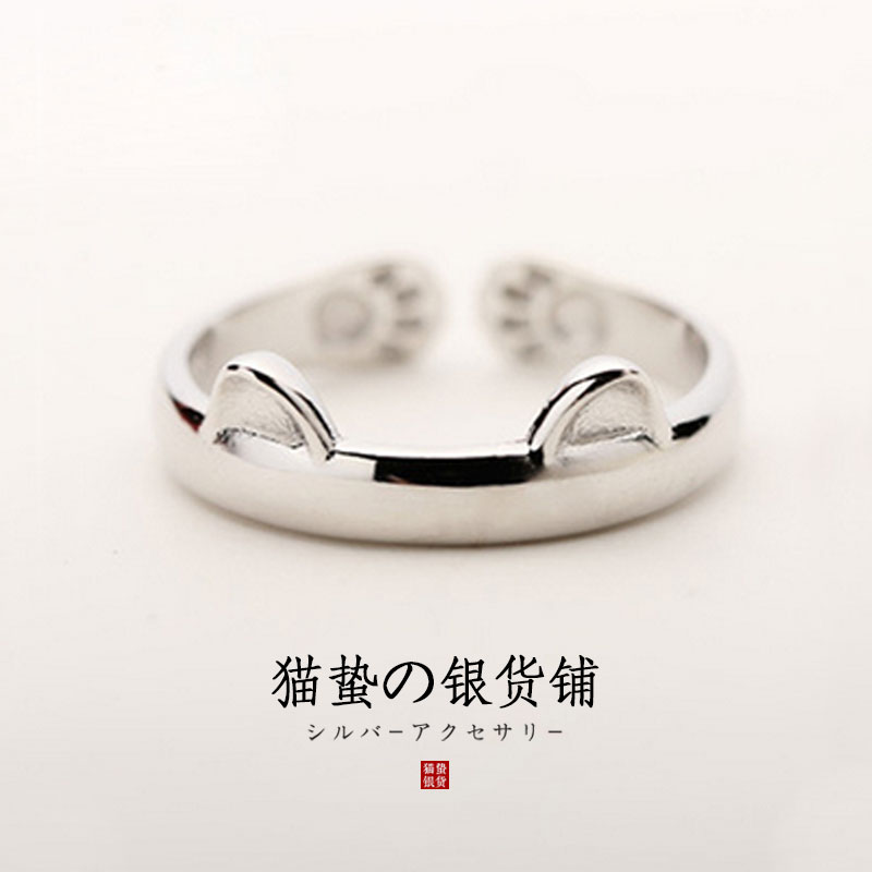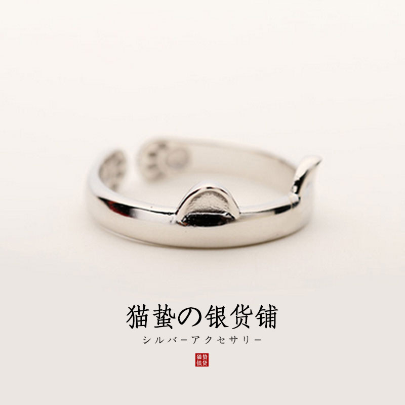 Cat sting s925 sterling silver small fresh ring ring female Japanese and Korean simple index finger small cat ear open tail ring