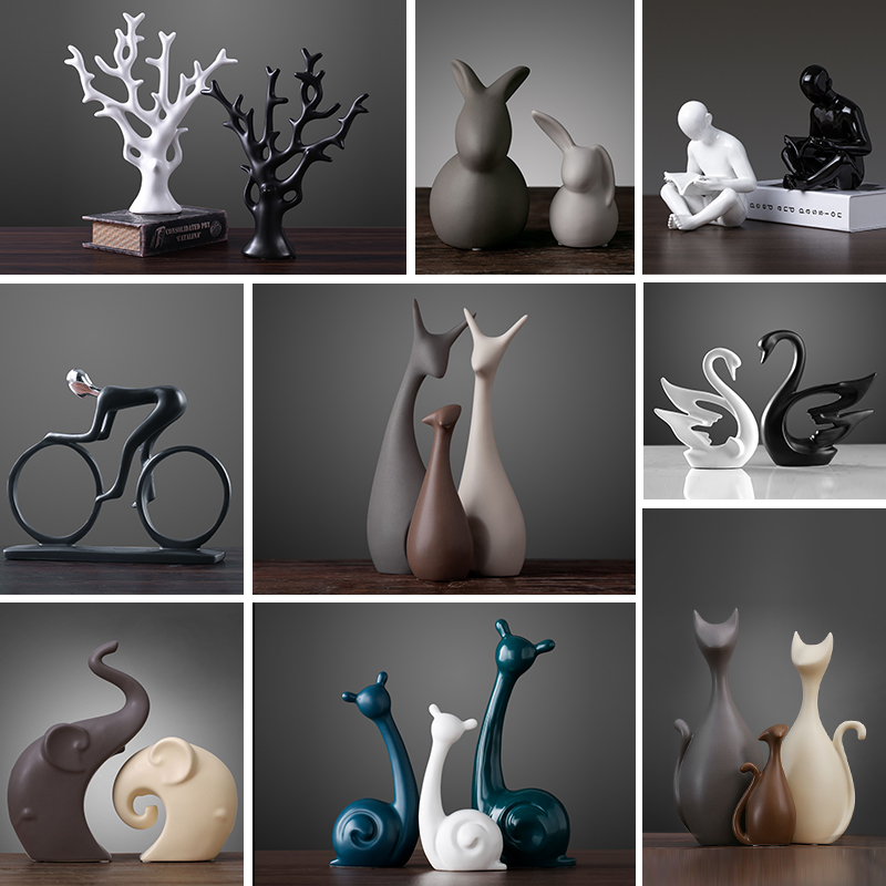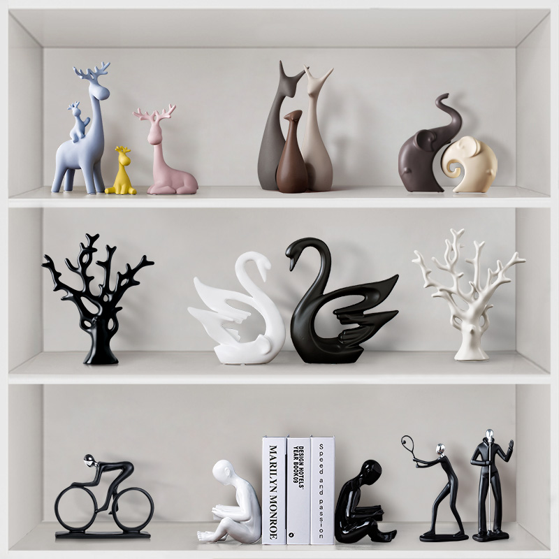 Yellow gray white transparent family of three deer(set price)Snail family of three (set)Fortune tree set Sweet couple Swan (set)Entrance 7-piece combination study decorative cabinet 5-piece transport