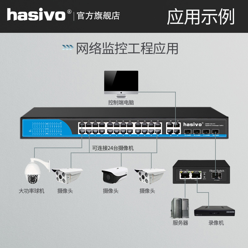 hasivo24 Gigabit POE Switch 4 sets of photoelectric multiplexing on the line S5800P-24G-4TC