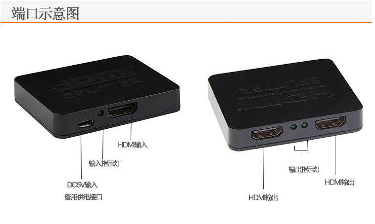 HDMI splitter 1 in 2 out HD HDMI1 in 2 splitter one in two out extension cable one drag two 1080P