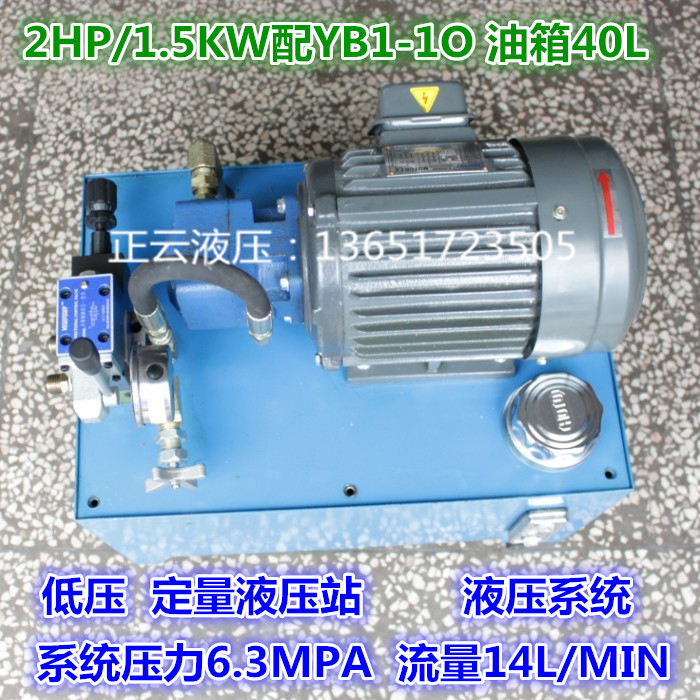 Low pressure hydraulic system hydraulic station 6 3MPA 1 5KW 5KW YB1-10 YB1-10 tank 40L with manual valve overflow valve