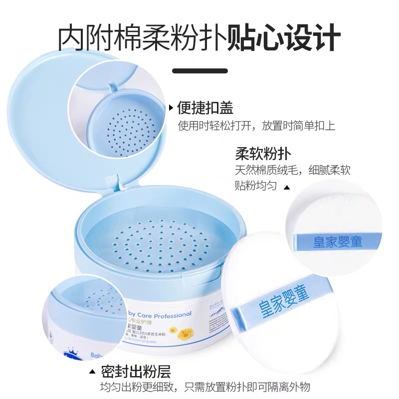 Royal baby baby talcum powder Newborn children natural puff four seasons universal baby corn prickly heat powder