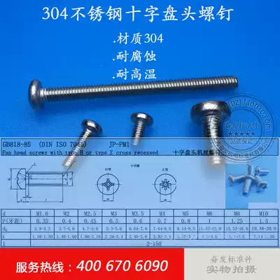 304 stainless steel pan head screws GB818 round head screws M3times 4 5 6 8 10 12 16 20
