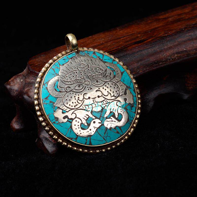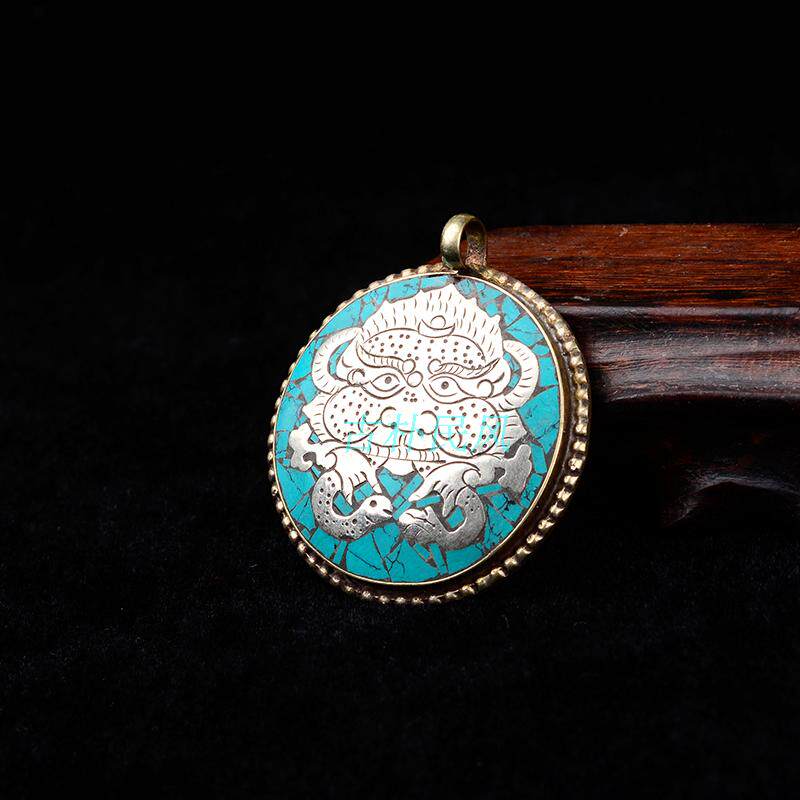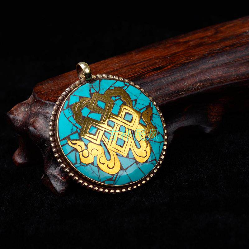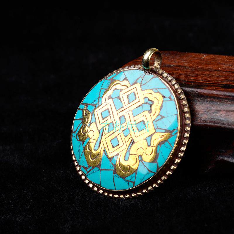 Tibet Nepal DIY accessories ethnic jewelry eight treasures auspicious knot inlaid turquoise necklace pendant Tibetan ornament