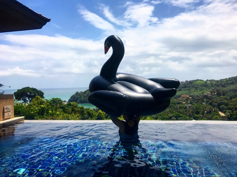 Oversized black swan inflatable floating bed cushion floating swimming circle pink swan flamingo floating mount shooting props