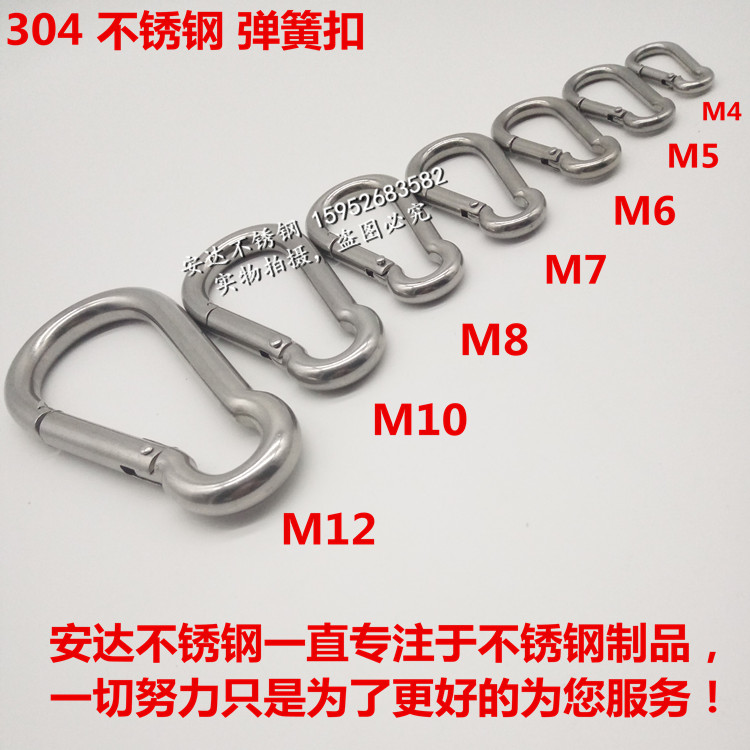 304 Stainless Steel Mountaineering Buckle Quick Hanging Buckle Spring Hook Spring Hook Insurance Clasp Chain Buttoning Rope M4-M12