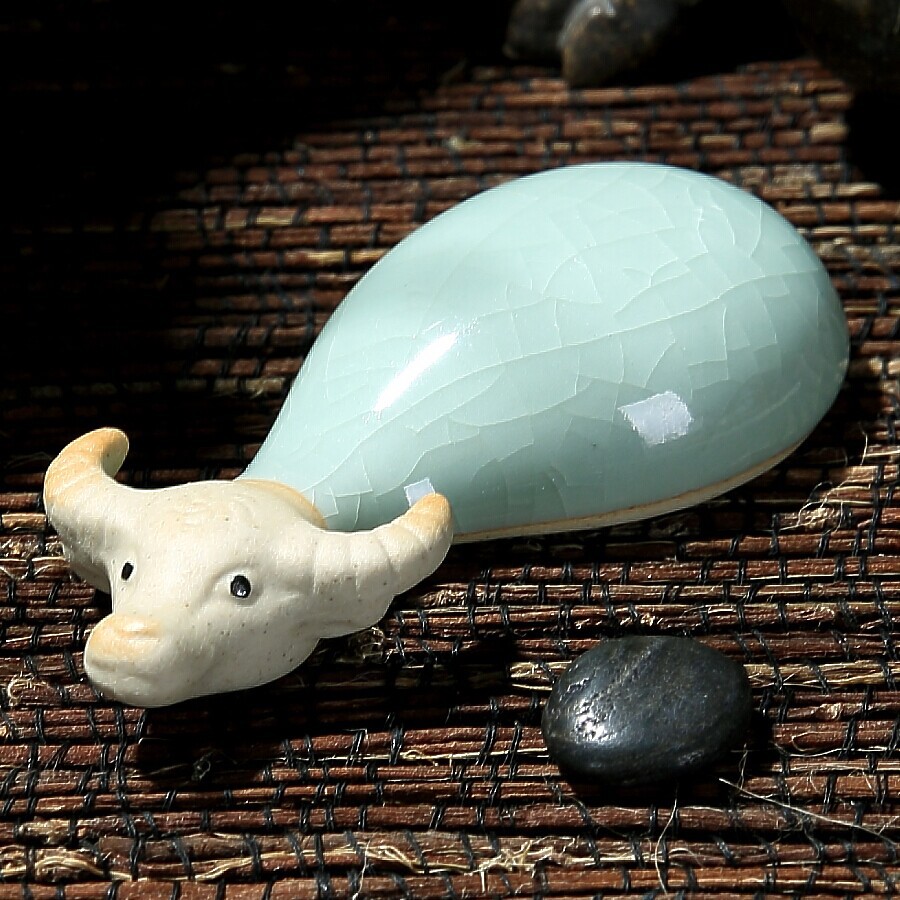 Pro-rhyming and green porcelain boutique Ru kilo tea spotting piece ceramic handicraft Niu Gothic kiln tea favorite ceramic tea set