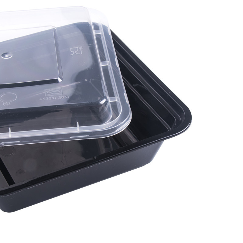 Rectangular 1000ml disposable lunch box packing box Transparent black lunch box delivery Bento square fast food box