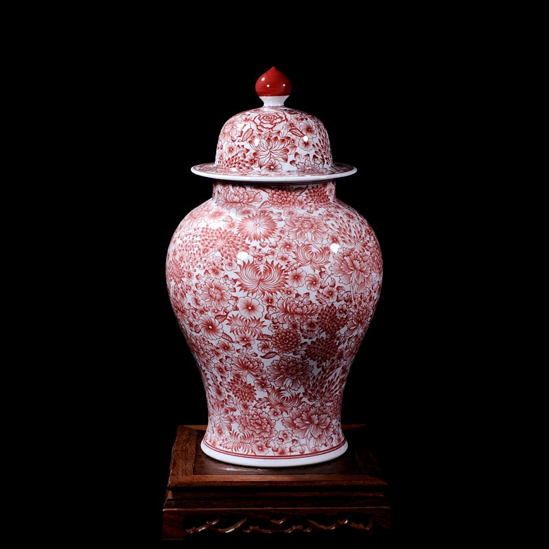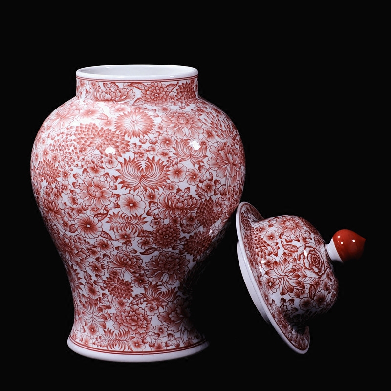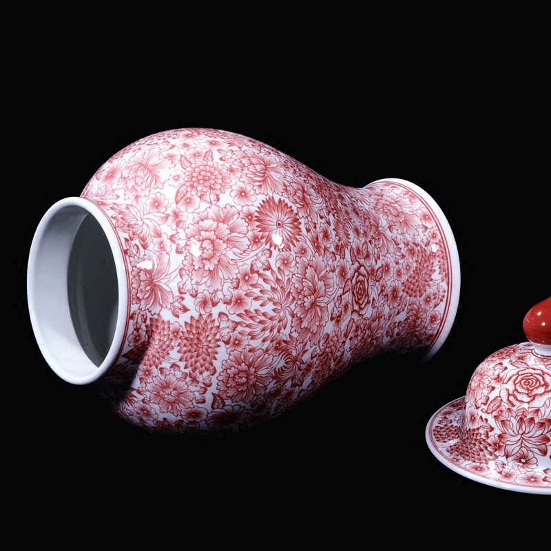 Jingdezhen vase ceramics high-grade antique hand-painted glaze red general cover pot ornaments wedding decorations