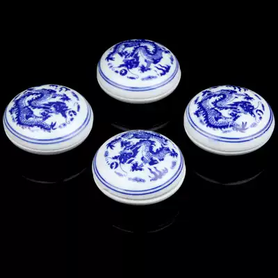 Wenfang Four Treasures Printing clay Blue and white porcelain box Printing clay Calligraphy and painting porcelain box Printing clay Calligraphy printing clay box diameter 5 5cm