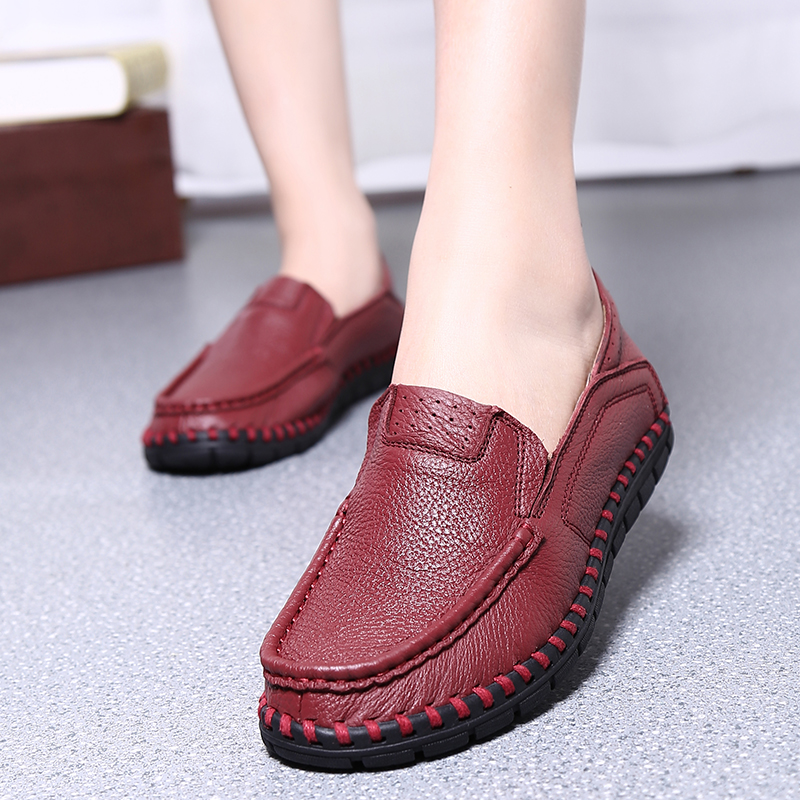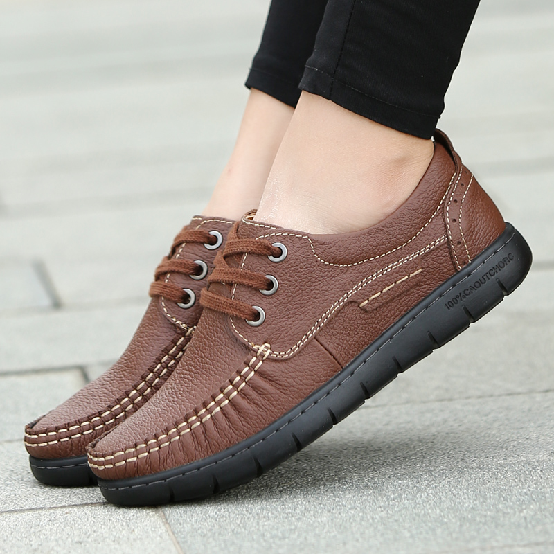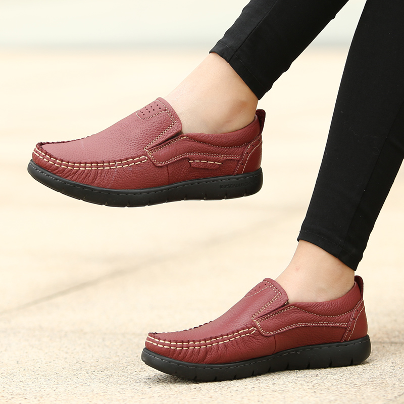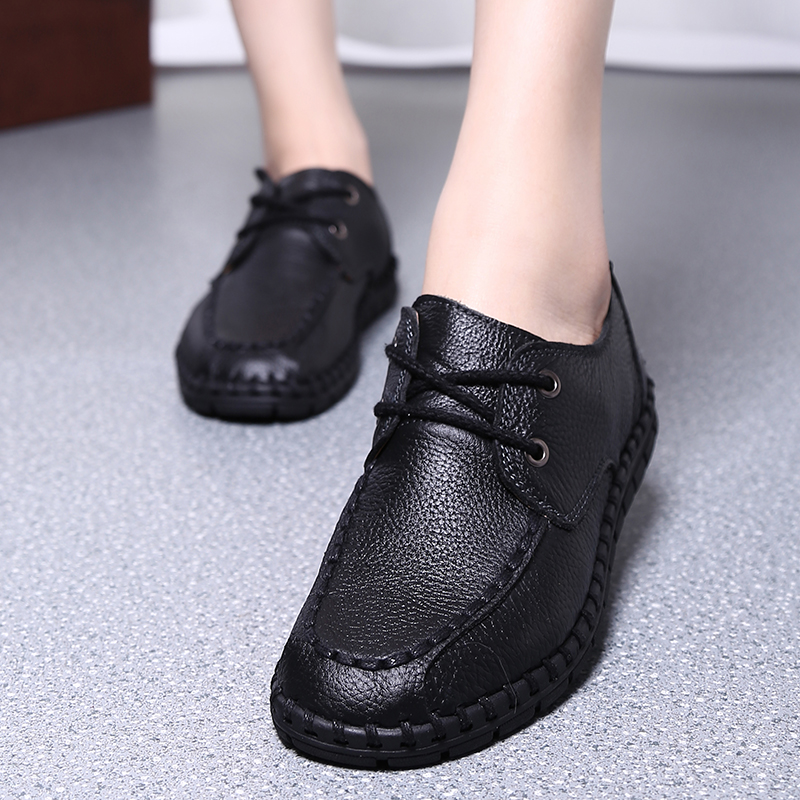 Spring and autumn cowhide leather mother shoes flat heel soft bottom non-slip middle-aged and elderly flat women's shoes casual leather shoes mother shoes