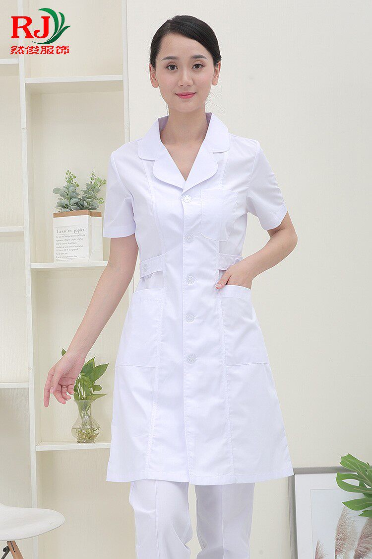 Nurse serving short sleeves white large coat with upper and lower round neckline for woman doctor's clothing beauty salon clothes beauty salon workwear