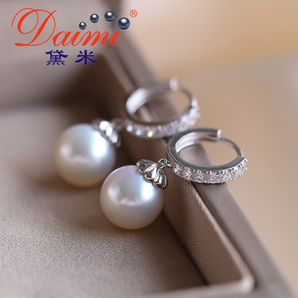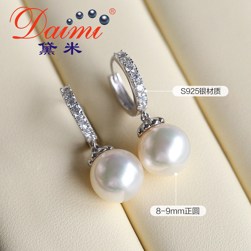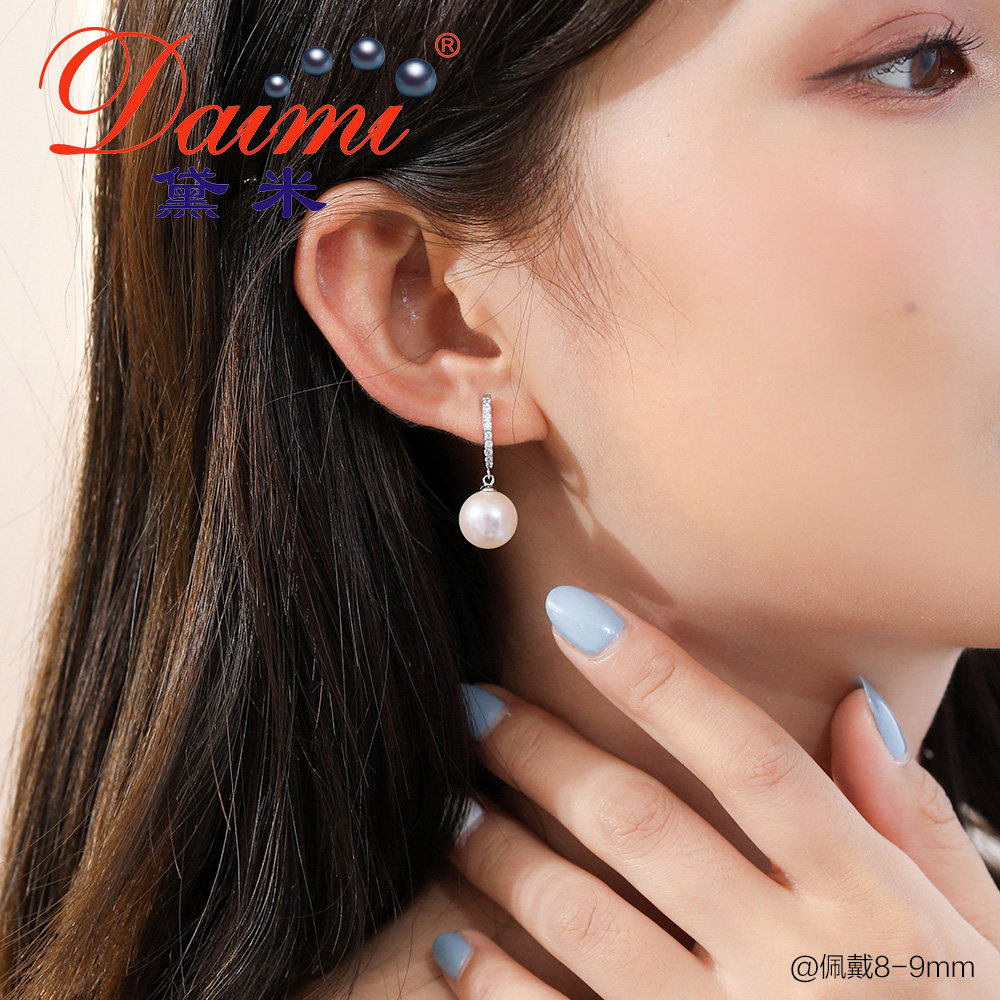Demi thousand pairs of 9-10mm positive round bright white freshwater pearl earrings S925 silver ear ring female drop earrings long