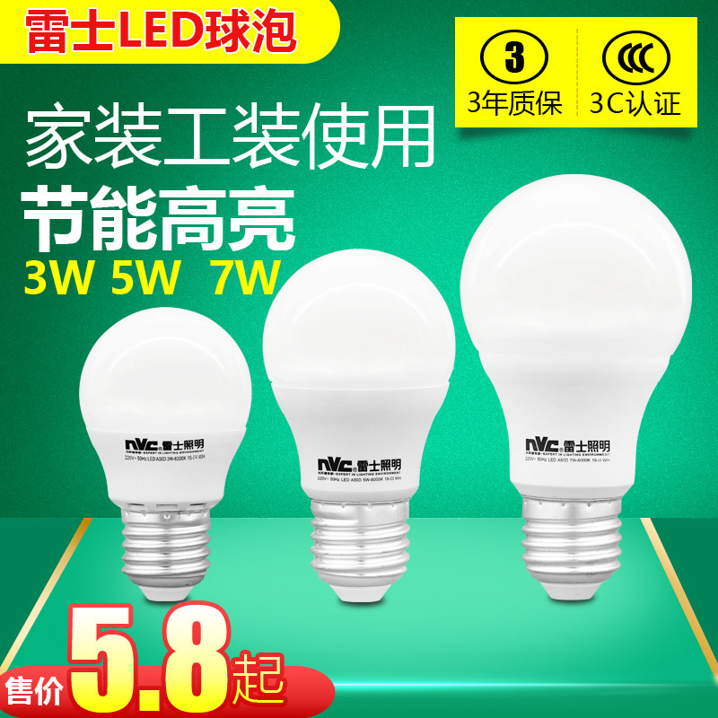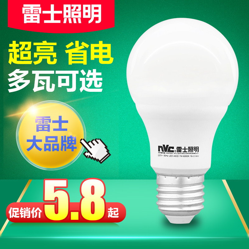 Rhys lighting LED bulb bulb e27 large screw mouth warm white yellow light white light household ultra-bright energy-saving light source bulb