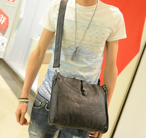 2020 new Korean version of the Korean version of the men's single shoulder bag fashion tide men's soft leather bag Inlan retro IPAD bag