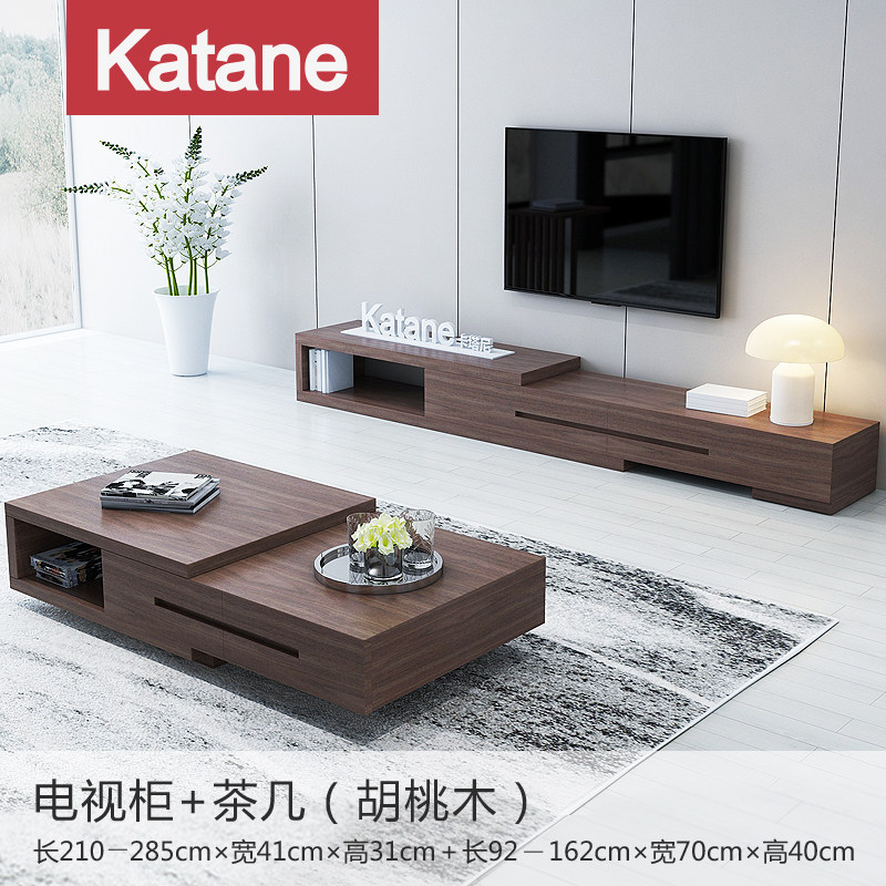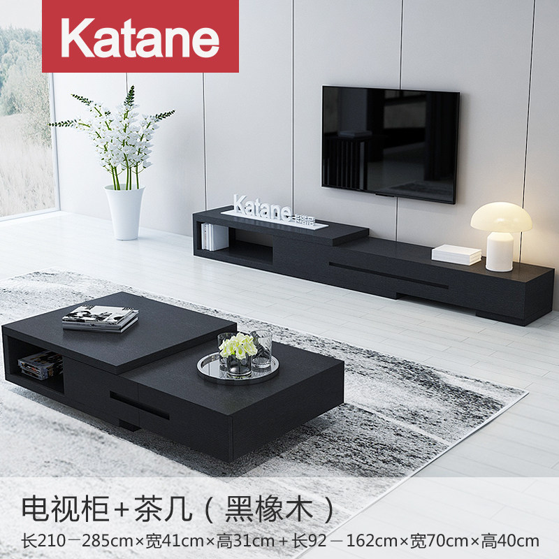 Modern minimalist telescopic storage coffee table TV cabinet combination Nordic living room size apartment furniture black oak coffee table