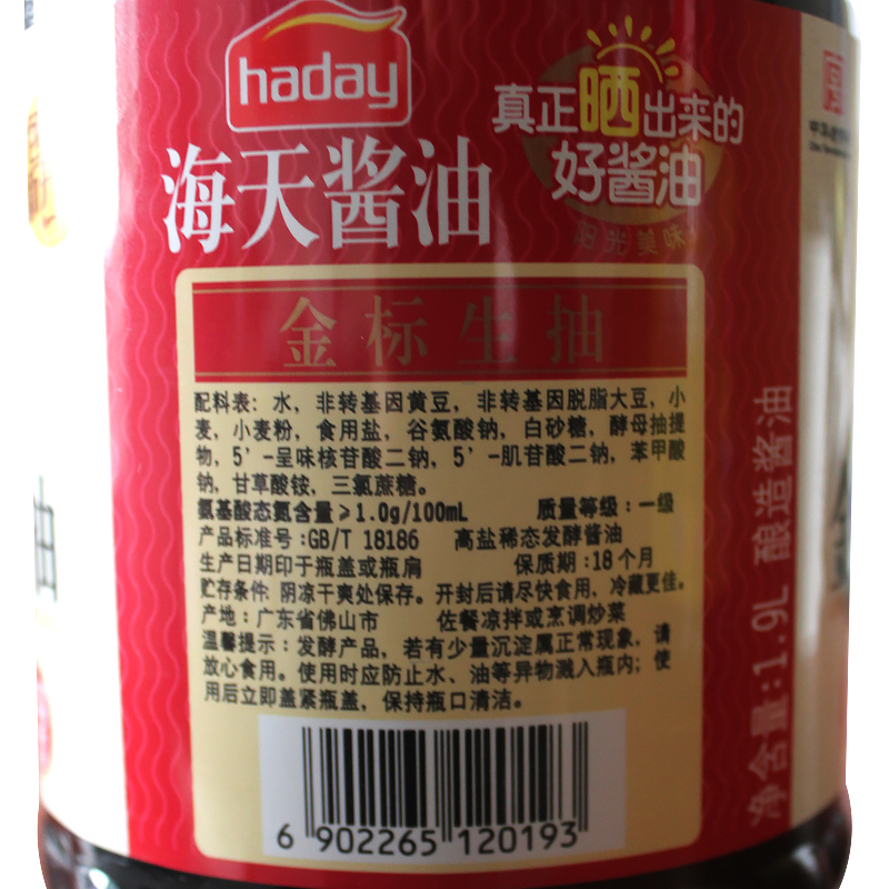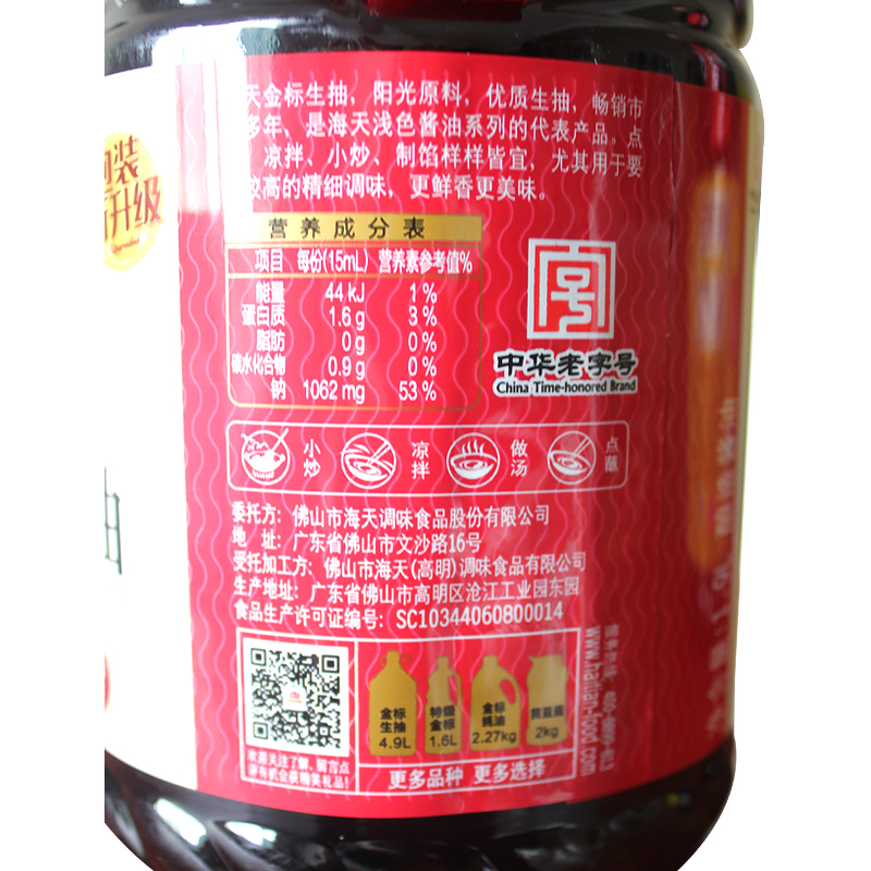 Haitian gold markup pumped 1 9L taste of fresh and cool color nongenetically modified soy brewing sauce flavor