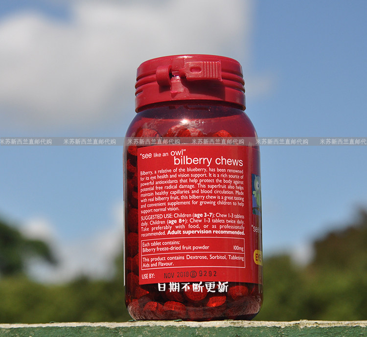 New Zealand direct mail prolife children's blueberry bilberry chewable tablets 240 capsules