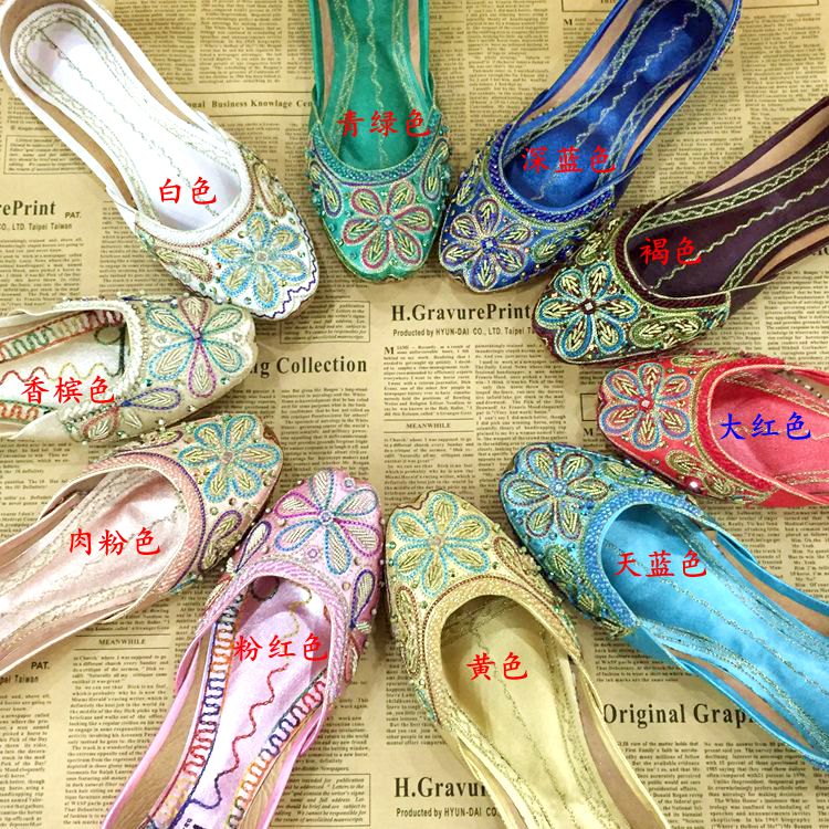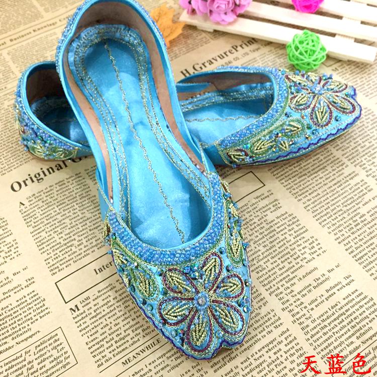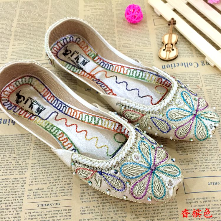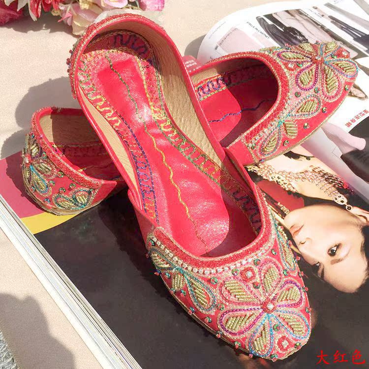 New Strings Beads Flat Bottom Shallow Mouth Pakistan Handmade Cow Leather Women Shoes Nepal National Wind Single Shoe Embroidered Shoes
