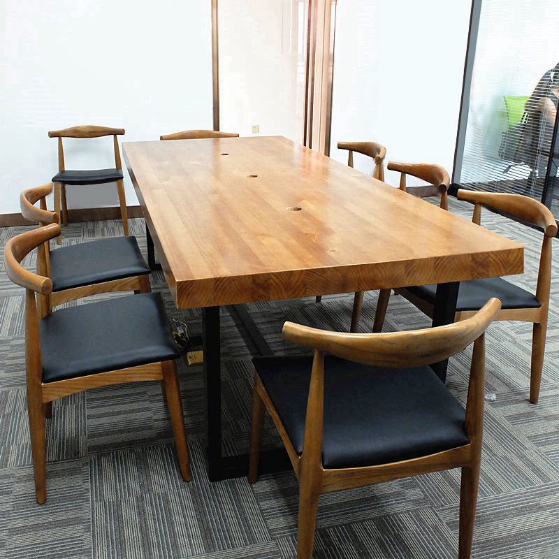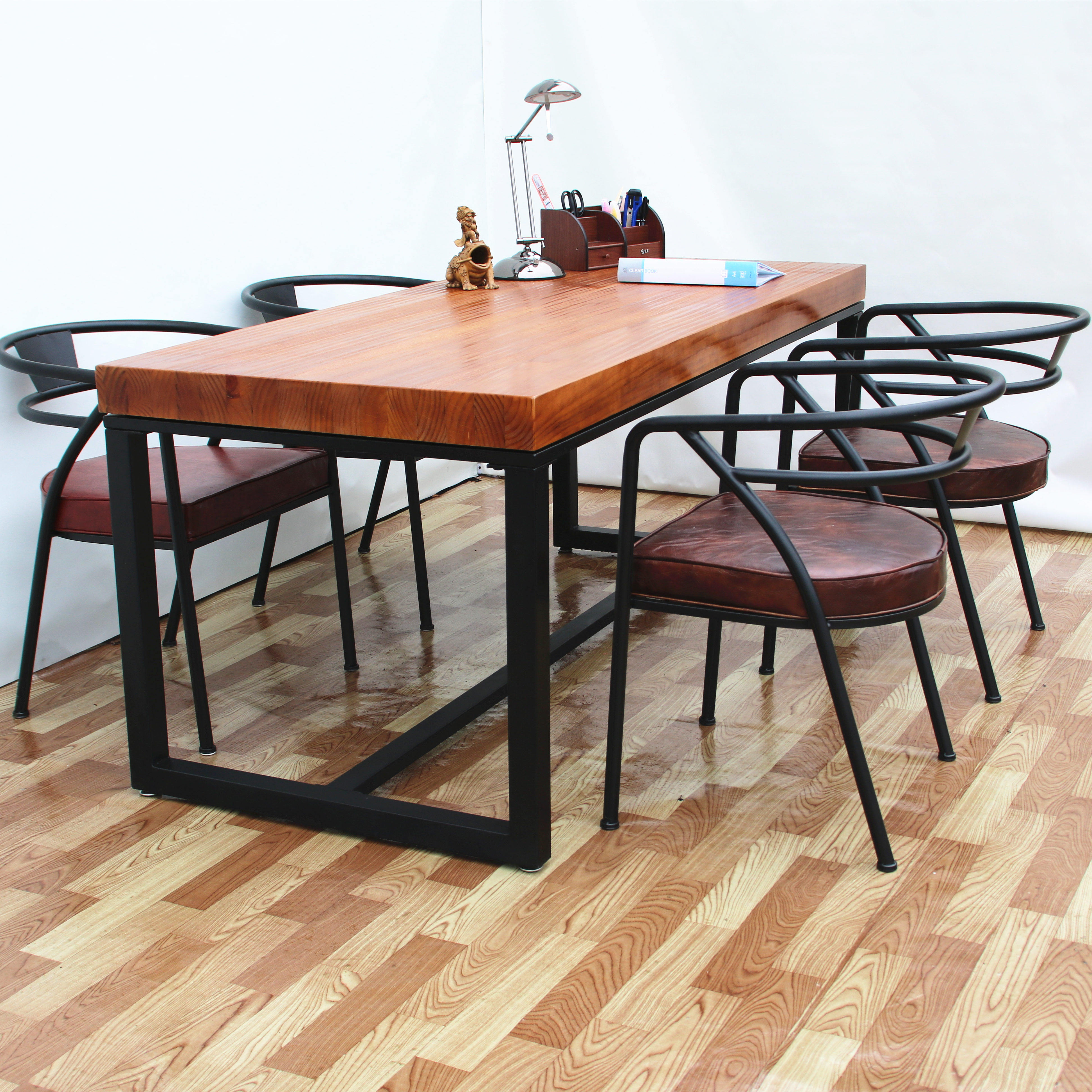 Loft American country solid wood elm wrought iron dining table retro old casual coffee desk office conference table