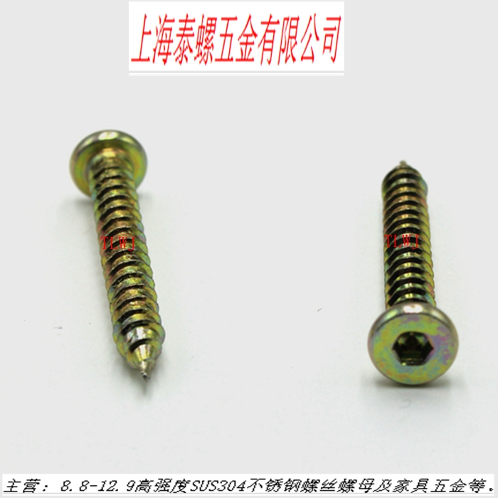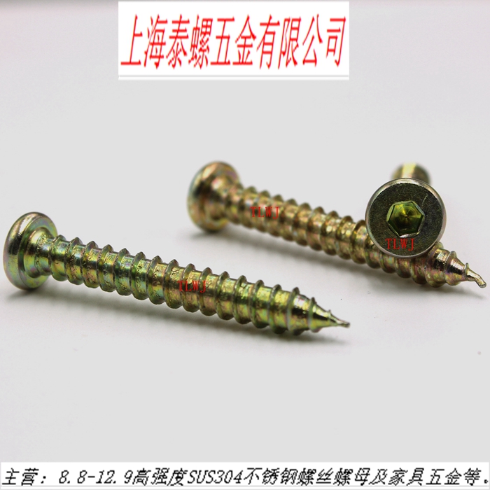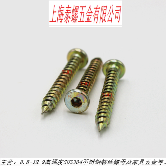 6 3 * 45 round head flat head flat inner hexagonal over mountain silk furniture counter straight repairing wood tooth self-tapping screw color zinc