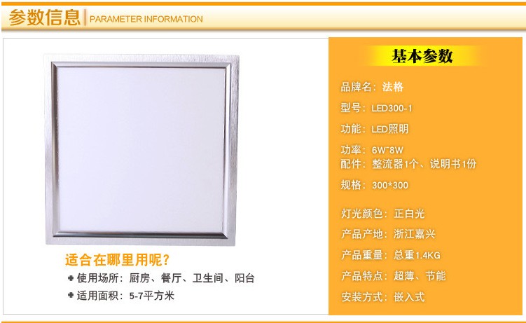 Fagor integrated ceiling LED flat panel lighting long light panel kitchen and bathroom long light patch light 300*600