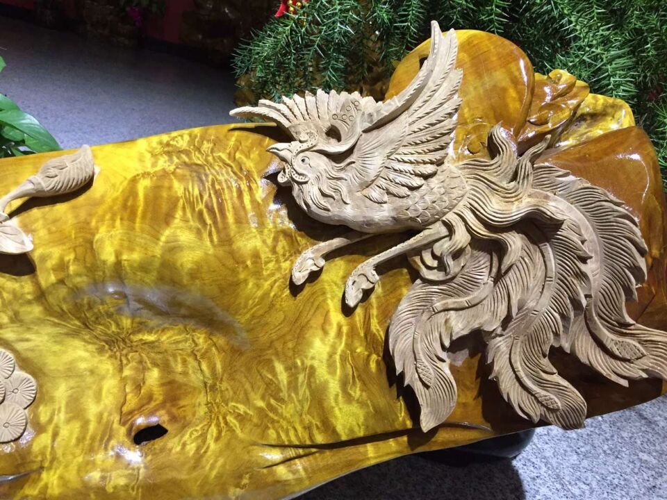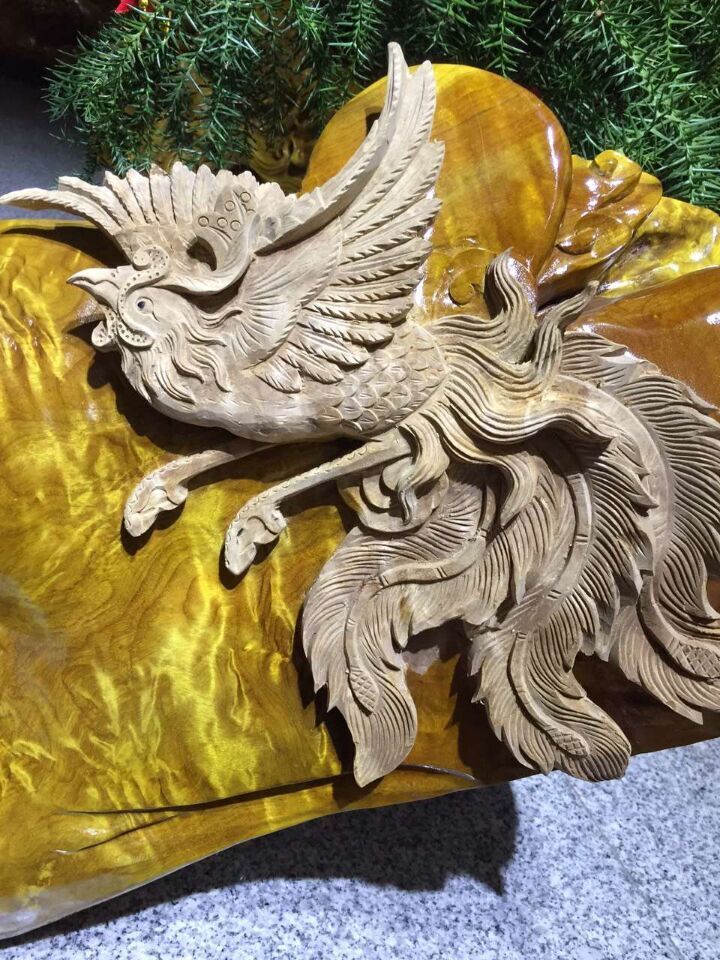 Sichuan Golden Silk Nanmu Wood Carvings Golden Silk Nanmu Wood Carved Yin Wood Gold Silk Nan Centenary Birds Towards Fengjin Nan Phoenix swing piece