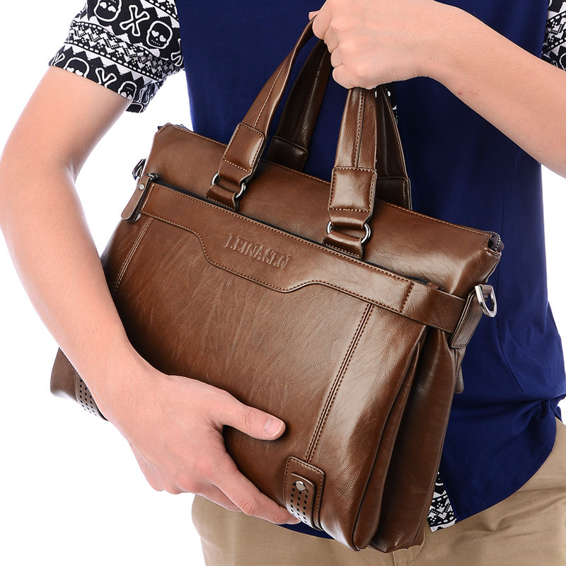 Men Handbag Bag Crosswalk Male Bag Single Shoulder Diagonal Satchel Soft Leather Bag Business Casual Briefcase Genuine Leather Computer Bag