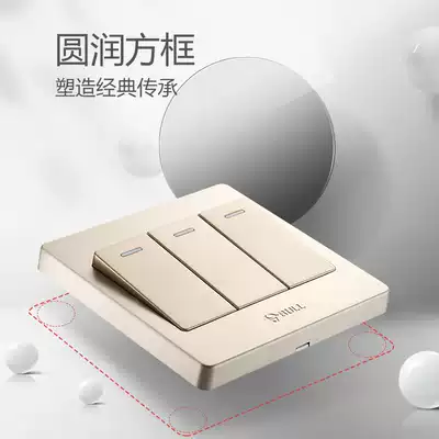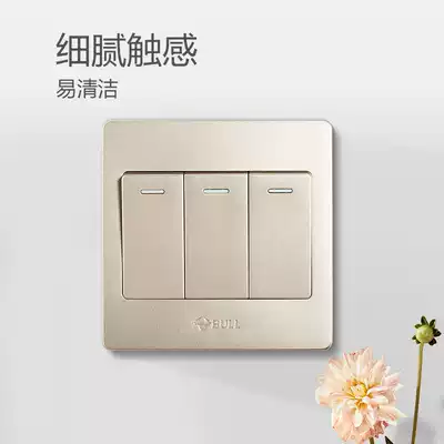 Bull socket Flagship switch socket three-open single-control three-position single-control power supply Wall switch panel gold