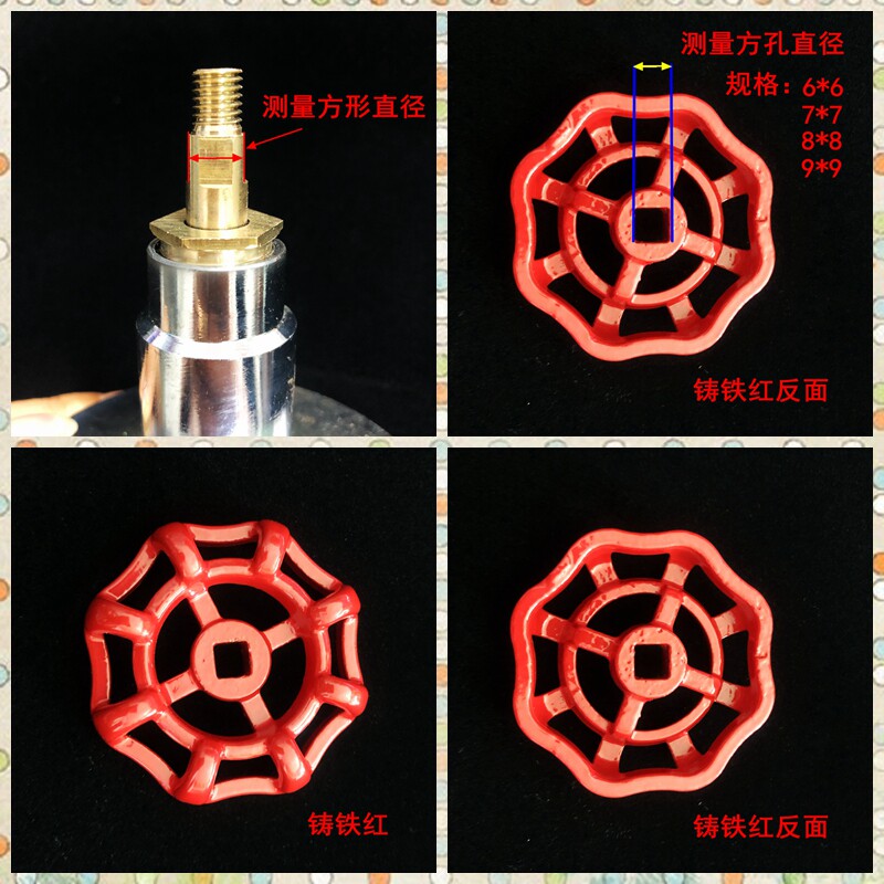 4 points 6 points gate valve hand wheel cut-off valve hand wheel cast iron red hand wheel 6*6 square hole handle handle rotation