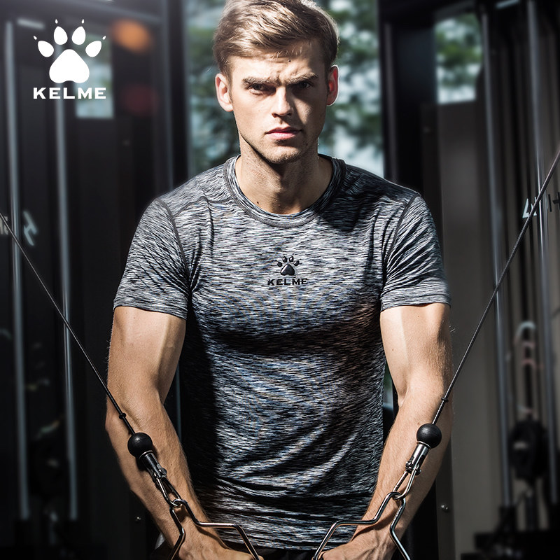 KELME Karmi High Play Sports Tight Fit Man Short Sleeve Pure Color Running Training Speed Dry Elastic T-shirt Fitness Clothing