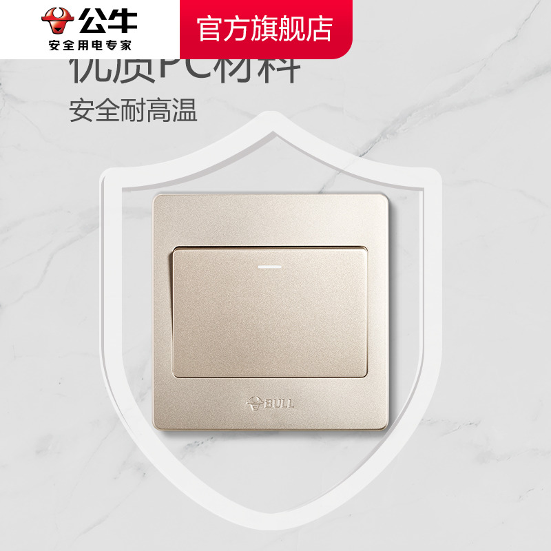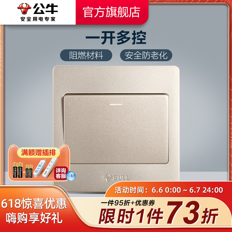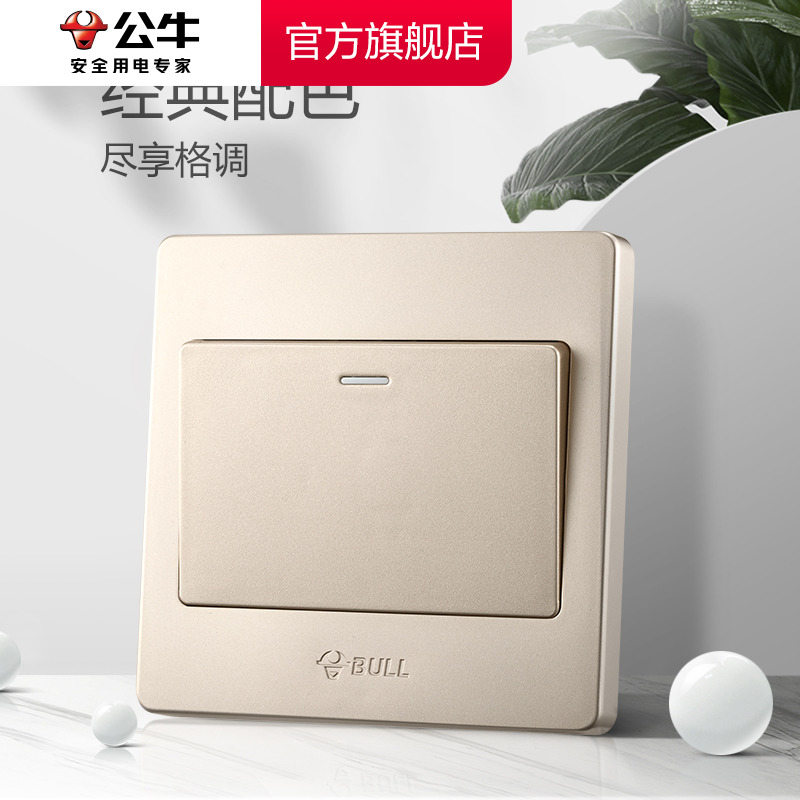 Bull socket flagship switch socket one open multi-control switch one open three control midway switch panel gold