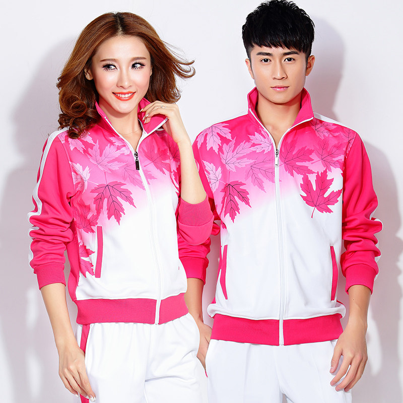 Jiamusi Fitness Playground Square Dance Tracksuit for men and women Spring and autumn large size Maple Leaf Three sets of bodybuilding step walking group suit