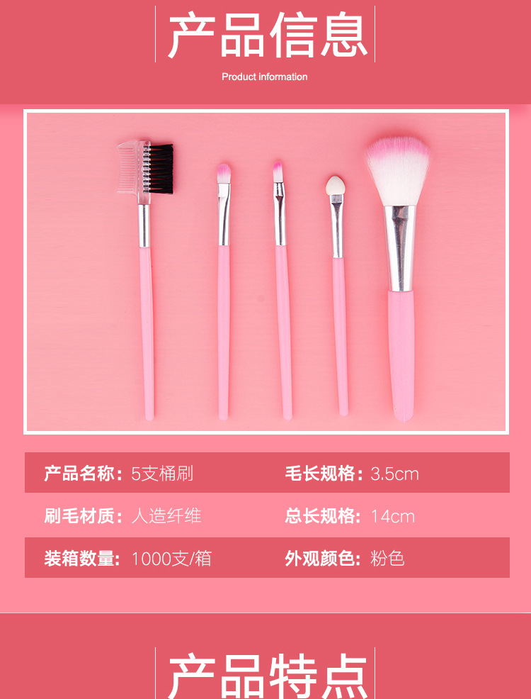 Imported Fiber Hair 5 Sets Brush Beauty Makeup Professional Makeup Blush Eye Shadow Brush Brow Brush Combination Without Brushed Wrap