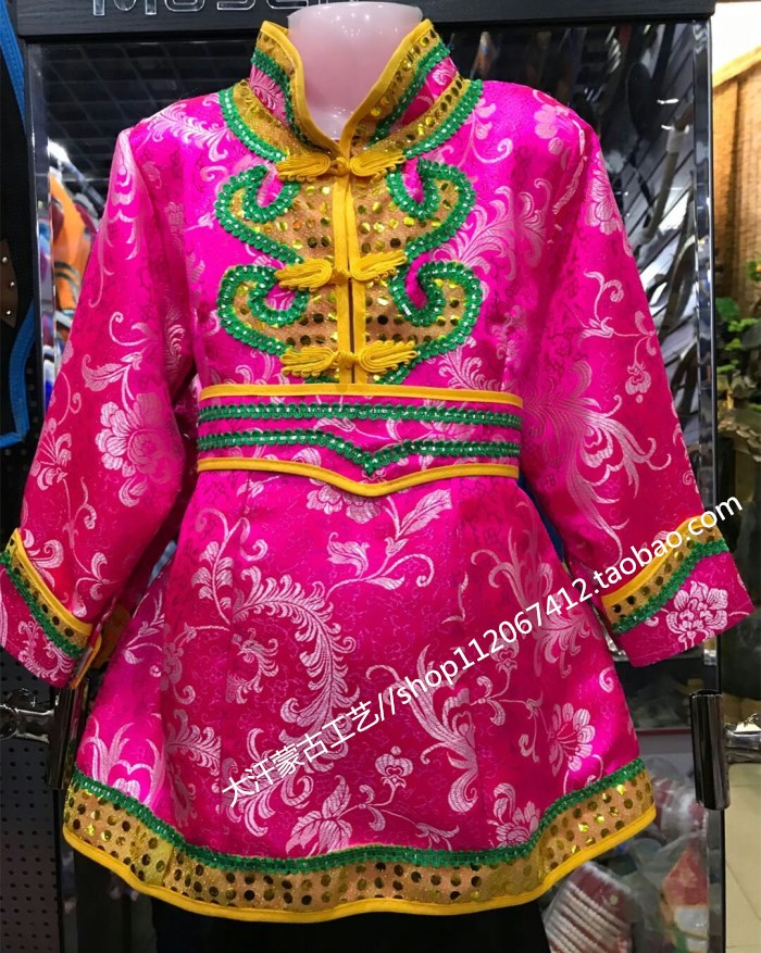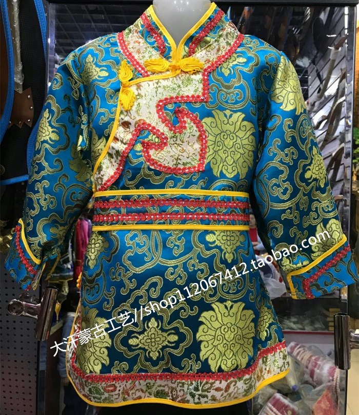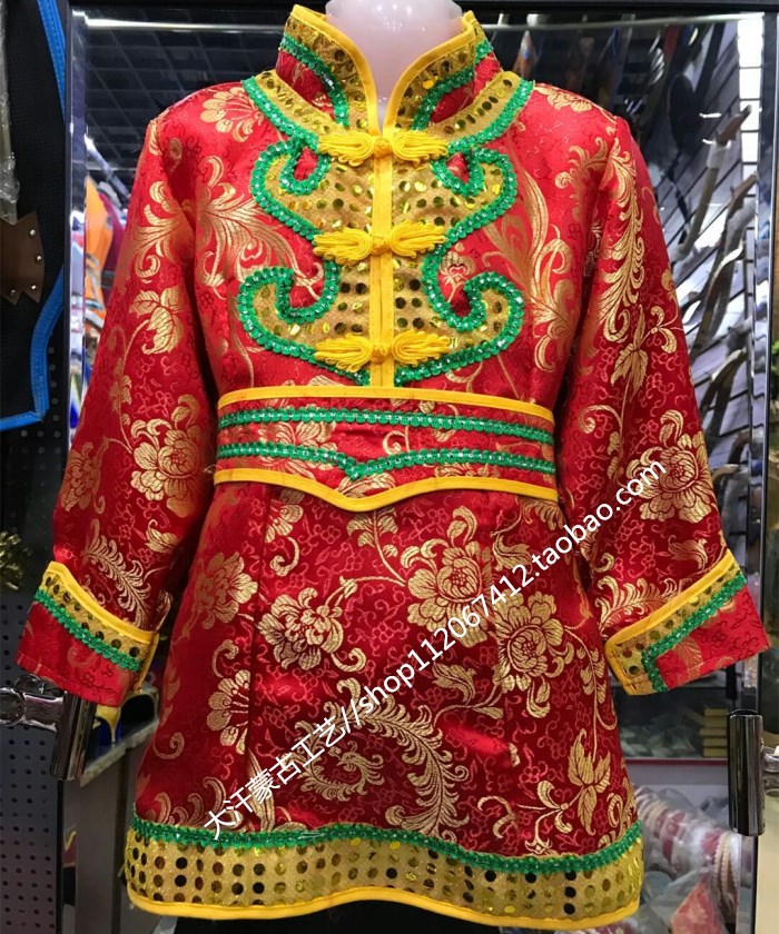 Children Mongolian gown male and female children dress Mongolian performance stage performance serve spring and autumn blue minority dress red