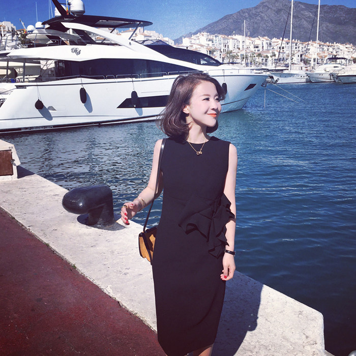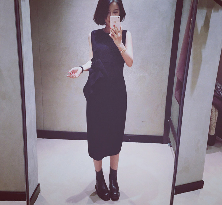 Liseyen Black Ocean Dress Lady 2022 New Medium Long Version Temperament Sleeveless Heben Little Black Dress Spring